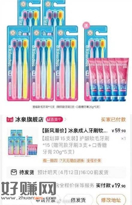 冰泉软毛护龈牙刷15支+贈3支牙刷+贈高端口香糖牙膏20g*5支
