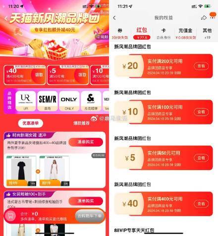【淘宝领新风潮品牌服饰满减券】淘宝打开活动->把所有券都领了->可叠加满减或立减使用!正好要买衣服裤子鞋子的都有用到