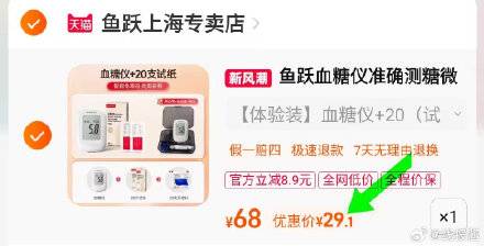 血糖仪+20片试纸+20个采血针+赠收纳盒和2节电池