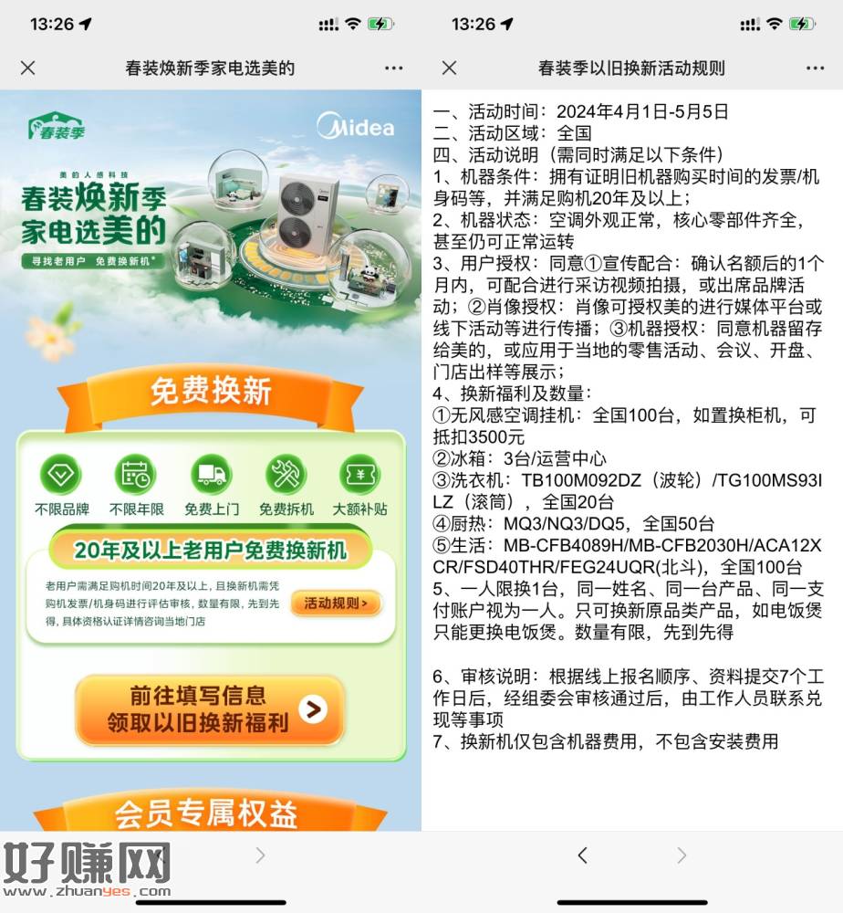 【美的空调20年用户免费换新机】美的空调用了20年及以上的用户,可以旧机免费换新机,貌似还要接受采访,感兴趣的上!