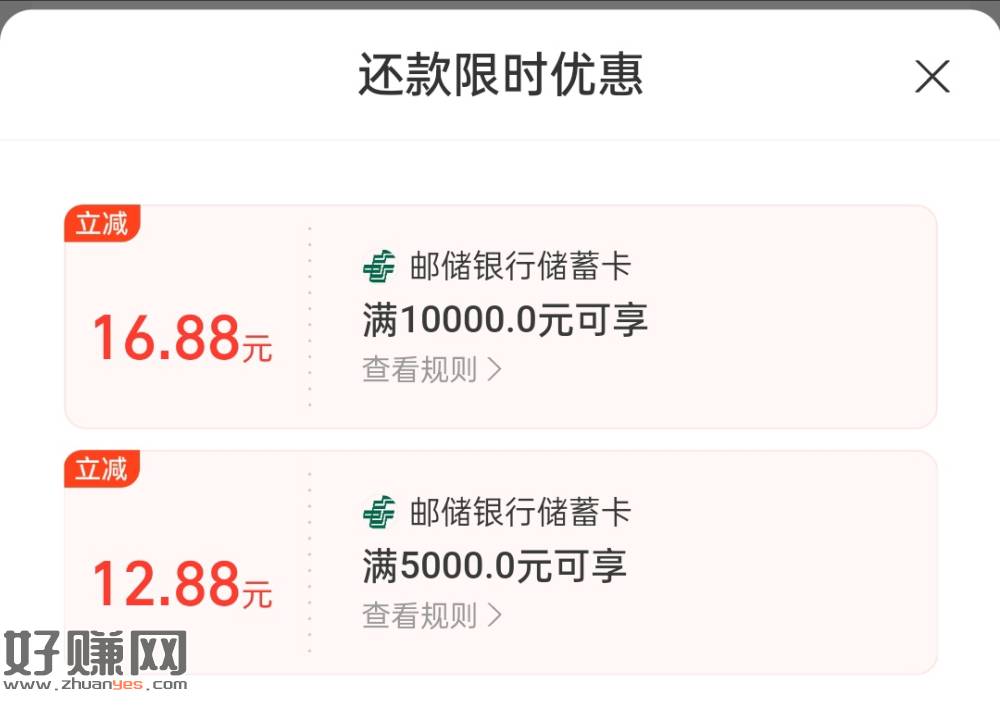 支付宝邮政卡还信用卡1w/0.5w,优惠10+。我广州闪光卡电子户有