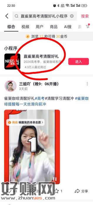 雀巢免费手机支架 抖音搜图一 点进去任务做完 假分三次不用拉