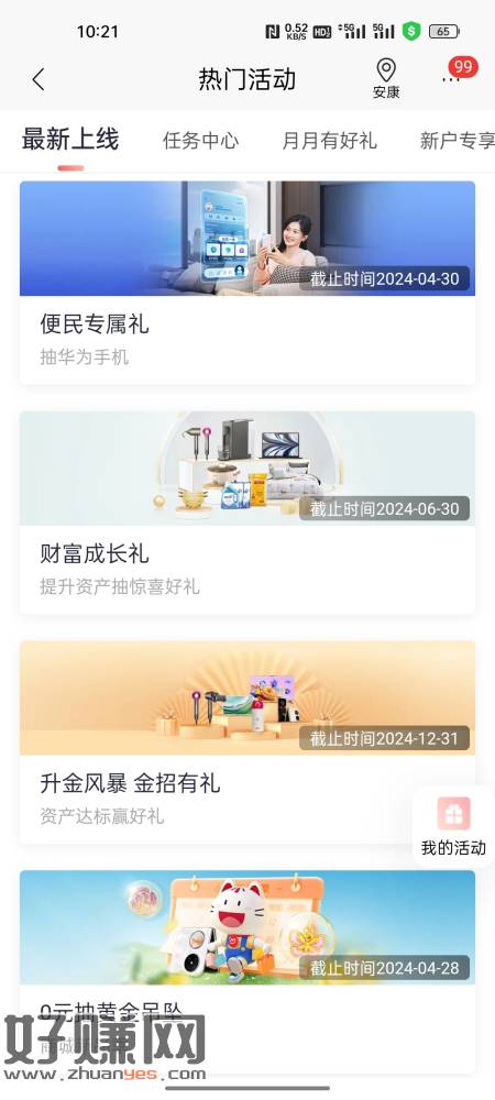 工行月月花达标抽99元立减金