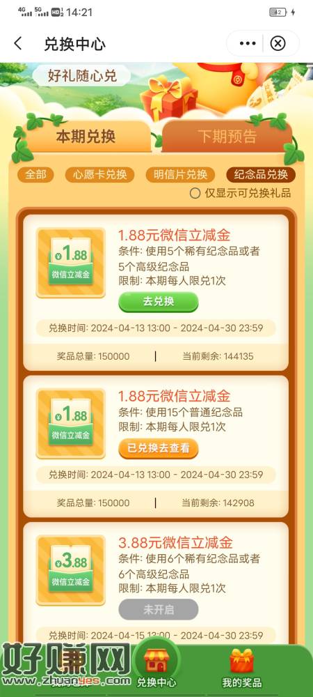 中行 福仔 兑换中心 15个普通纪念品换1.88立减