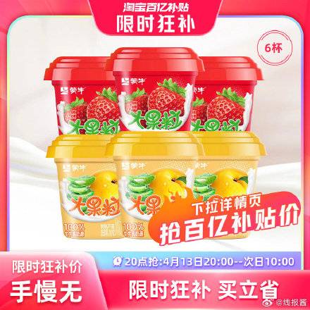 百亿补贴,25.9亓, ,蒙牛大果粒芦荟黄桃草莓酸奶6杯
