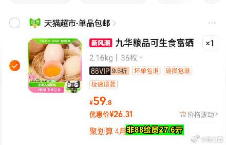 消灭猫超卡好忦,26亓 ,九华粮品可生食富硒鸡蛋36枚