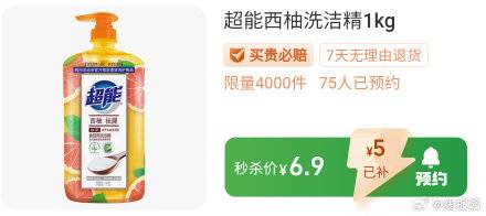 百亿补贴6.9亓, ,超能西柚祛腥洗洁精1kg/瓶,