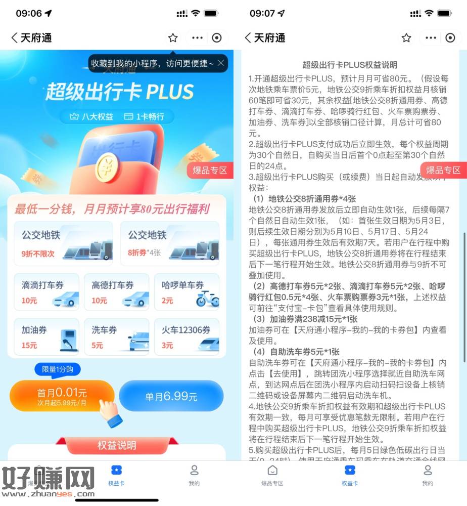 【支付宝0.01元撸高德滴滴20元券】没参与过的上!支付宝搜索“天府通”->超级出行卡->首次0.01元开通后在卡包查看,高德和滴滴各2次立减5元->最后去支付设置里取消自动续费即可