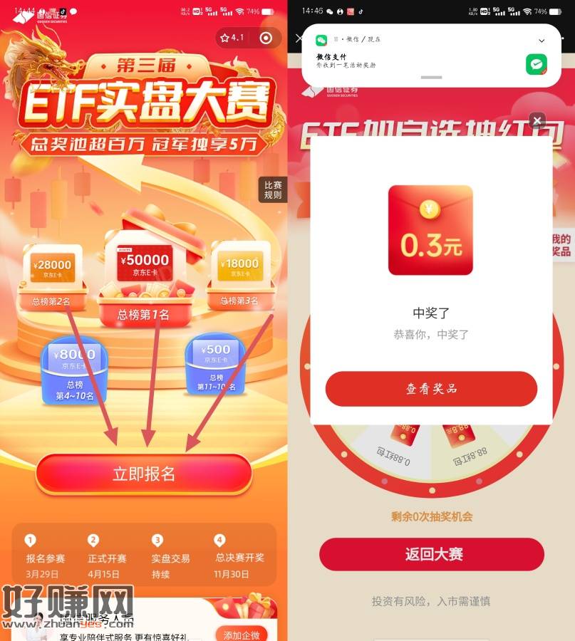 点击报名 然后截屏扫 抽奖必中零钱