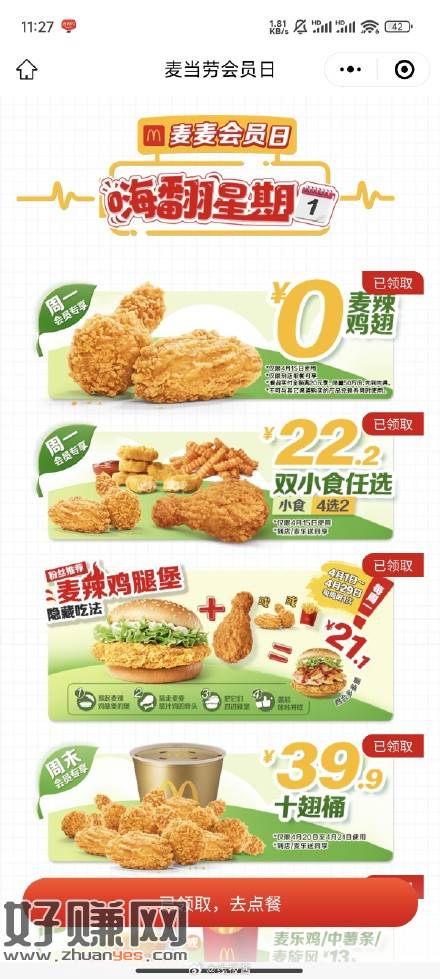 麦当劳随单辣翅,目前随单门槛是20了
