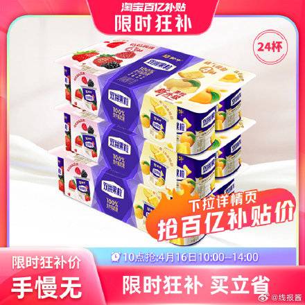 百亿补贴27.9亓 ,蒙牛双拼果粒风味酸奶24杯!