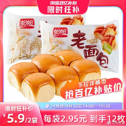 百亿补贴5.9亓, ,盼盼老面包155g*2袋 共12枚