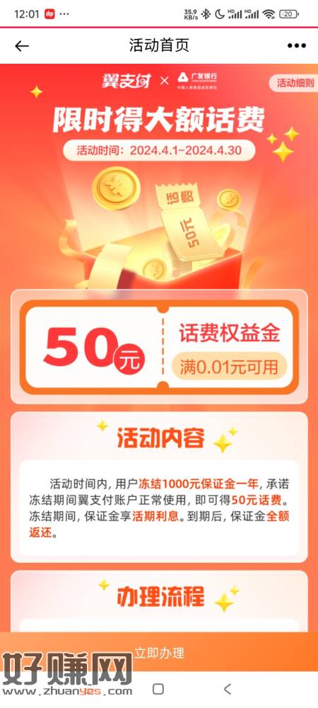 电信翼支付,定期广发1000给50话费,相当于5%。利率很高
