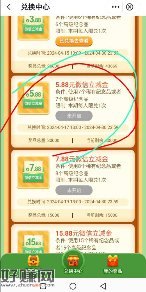 下午 13:00 开5.88立减金(使用7个稀有纪念品或7个高级纪念品)