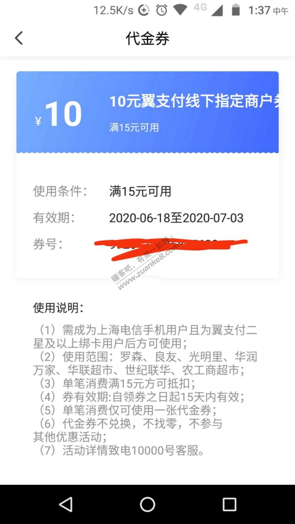 送一张翼支付15-10线下券,限上海地区