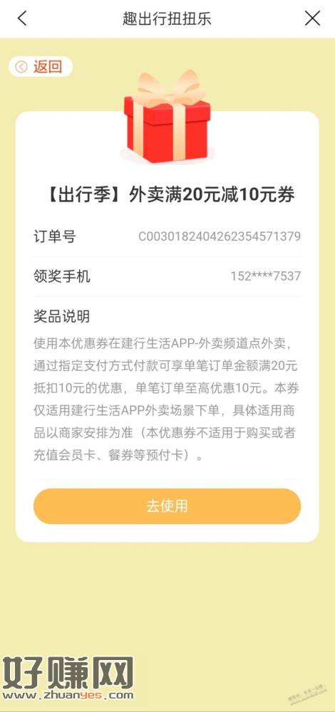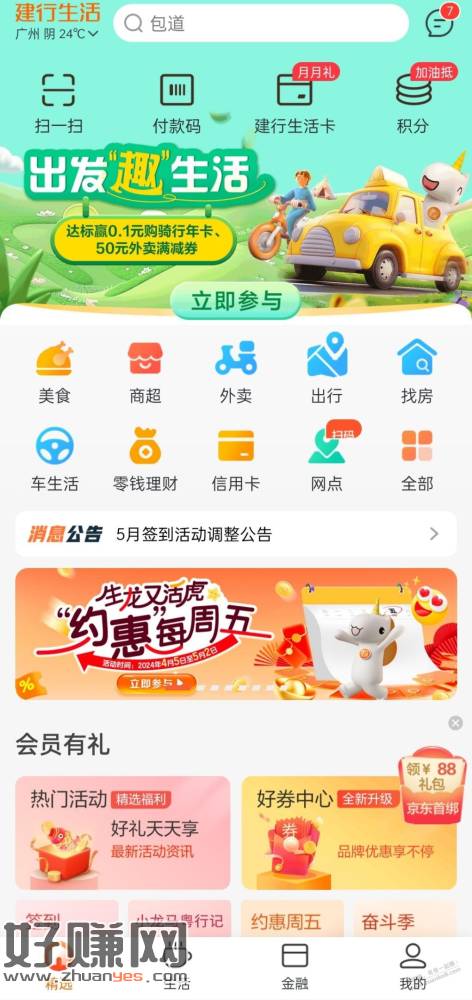 建行生活首页横幅抽外卖券