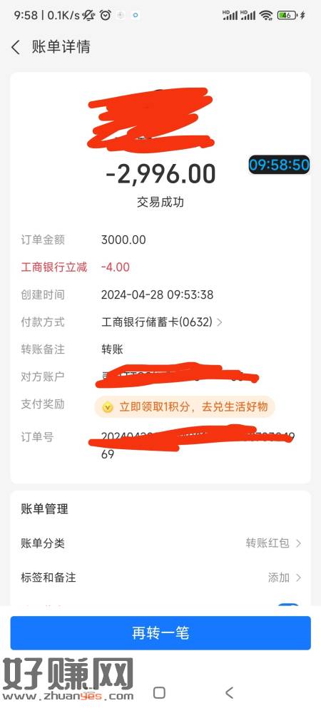 zfb 工行转账3000-随机(昨天转完今天还有)