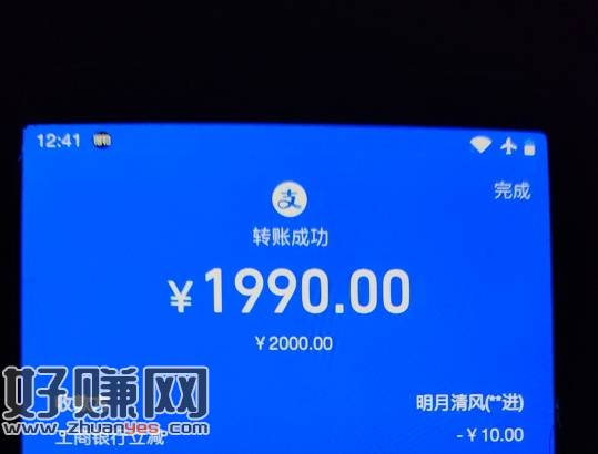 厦门工行支付宝转账2000-10