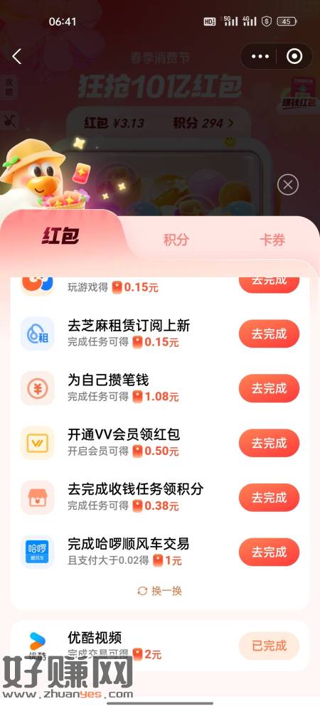 zfb消费节,抽到优酷任务,完成不了的或者价格不是0.1的,