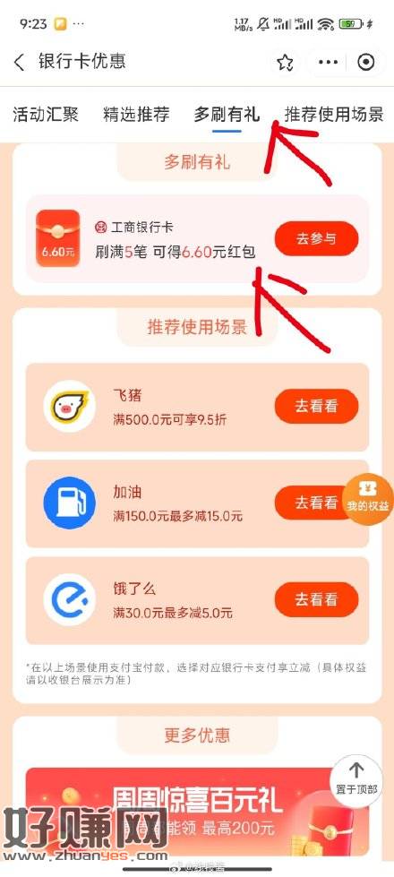 支付宝搜【银行卡优惠】多刷有礼,可报名工行卡