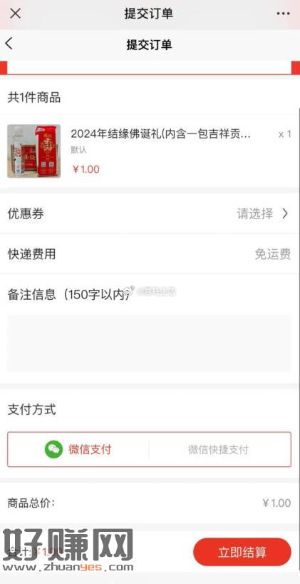 【上海万佛寺1亓申领长寿面和水】不限地区参与!微信打开地址->支付1亓申领包邮到家,共限量30万份(页面有点卡 耐心点