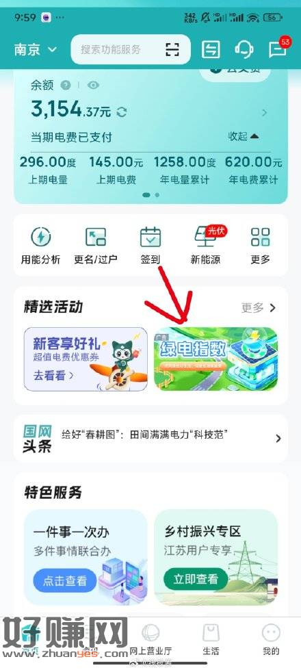 江苏地区,网上国网App,首页精选活动,绿电指数进