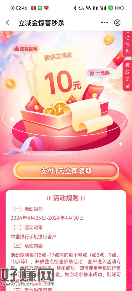 中行 1买10立减金 今天最后一天 没毕业的抓紧 App搜微信