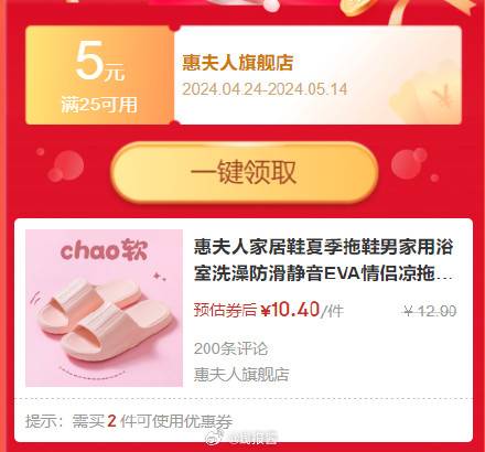 惠夫人 EVA防滑拖鞋,任选2双9.8元