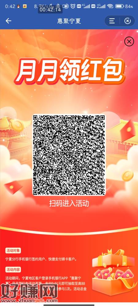 建行宁夏月月礼,还有签到6天任务,保底30+