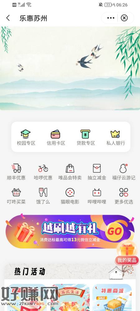 中行苏州越刷越有礼上个月报名了的 达标可以领了 还有个盲盒活动