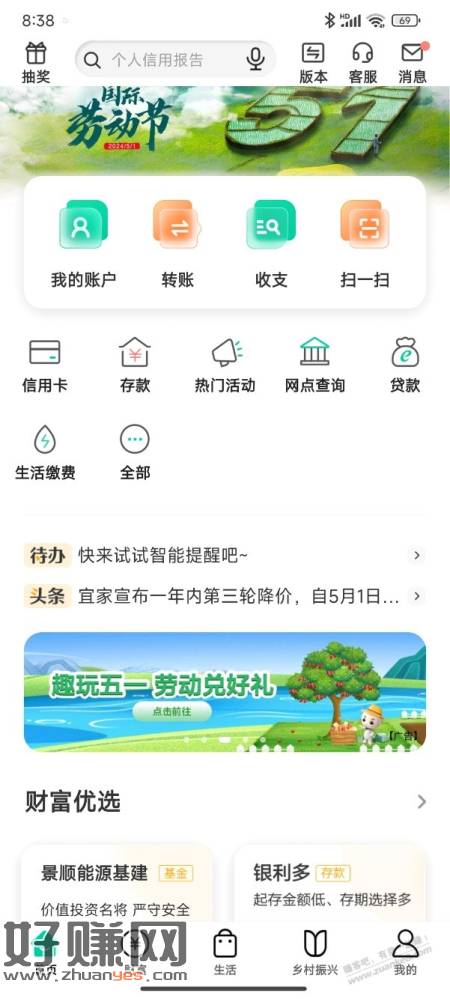 农行app-首页-趣玩五一,劳动兑好礼!兑换微信红包