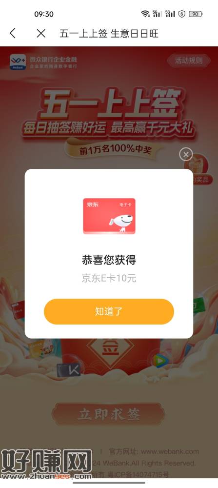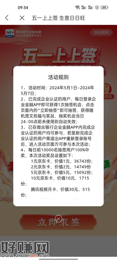 微众企业金融上上签 5.1-7每日前一万名额 名额有限