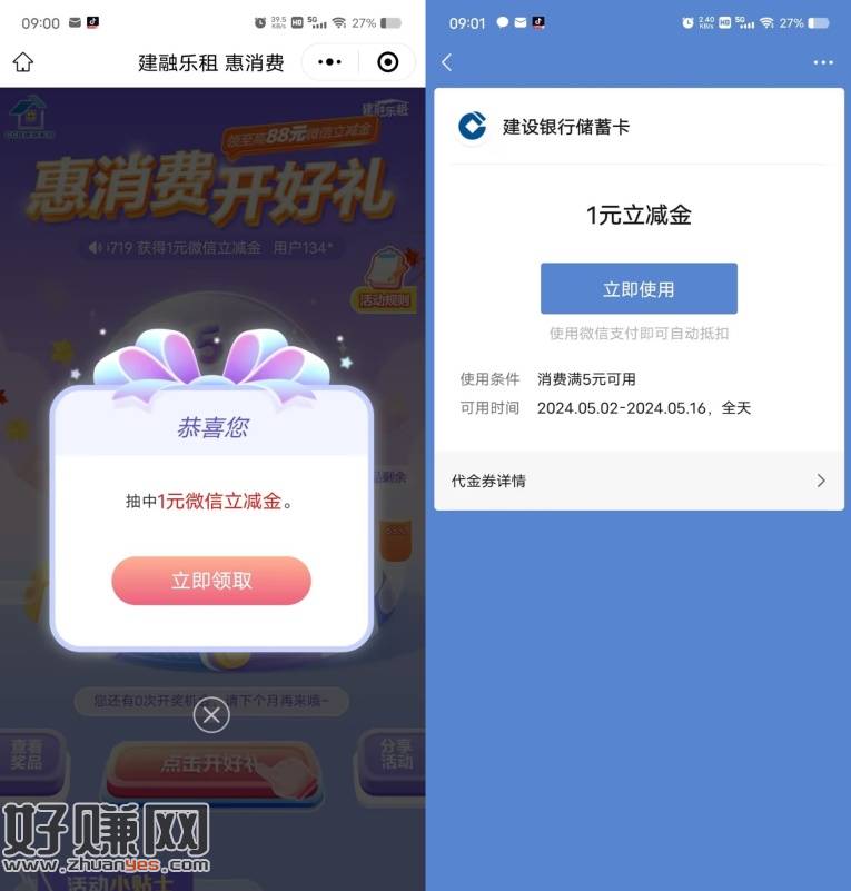 建融家园抽1-88元微信立减金