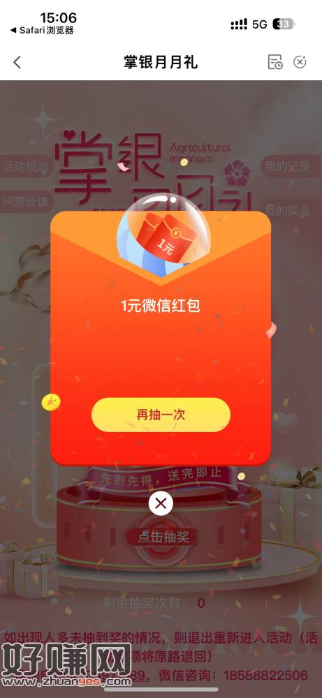 ,选择“掌银月月礼”,第5次必中。转发无效拒收回复R