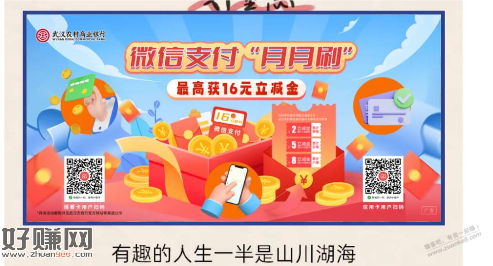 武汉农商银行月月刷微信立减金,速度16元毛!!!!!!