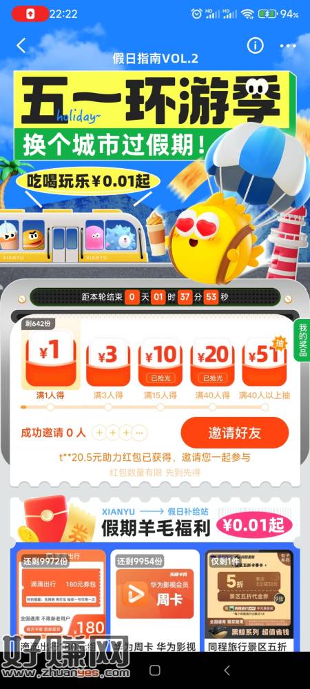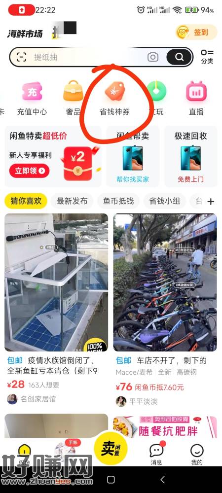 咸鱼,点图中圆圈⭕,以前的腰人领宏包的活动又有了,可以腰自己