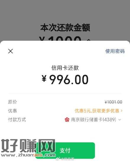微信还信用卡,南京银行有1000-5