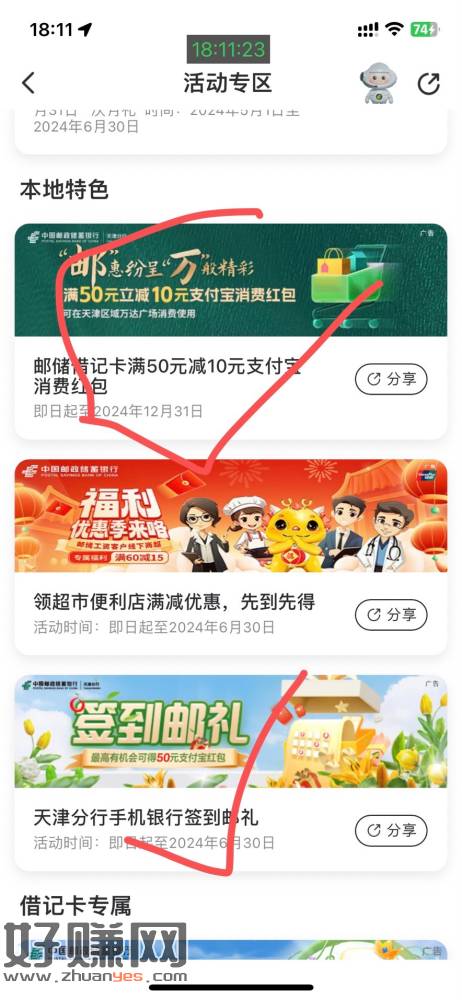 邮储天津限卡 限卡50-10 签到可以玩俩天