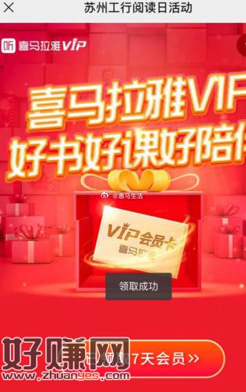【喜马拉雅阅读日直接领7天会员】打开活动地址->登录后直接领7天会员,限量5000份先到先得