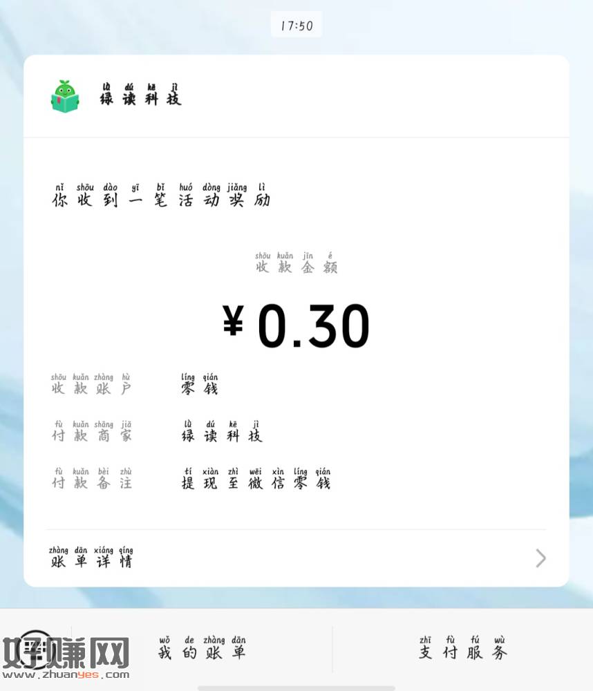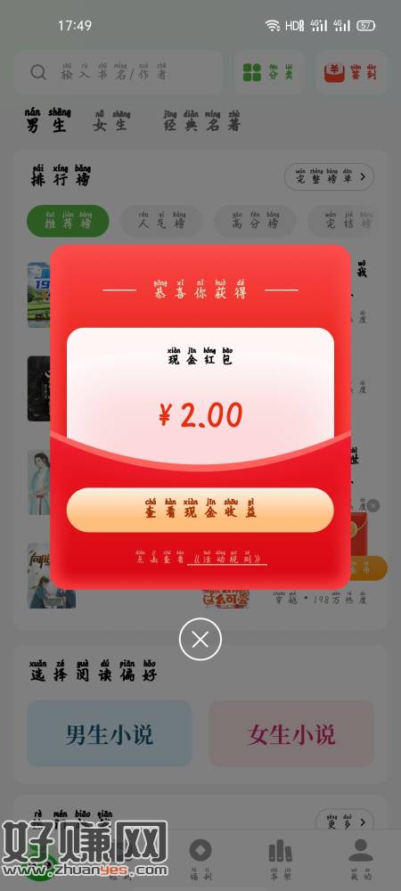 绿豆小说新人送2元,老规矩提0.3卸载。