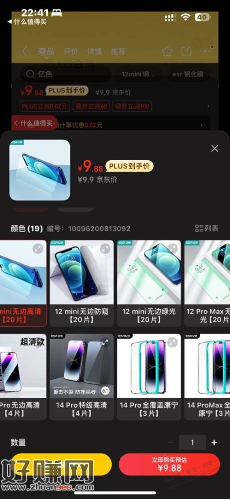 亿色多型号钢化膜20张9.9元 之前买过他家se2的 不错