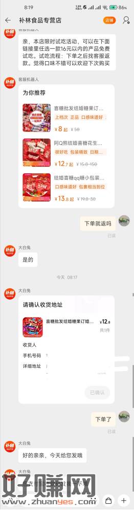 天猫这家店找个最便宜的下一单看商家有没有发试吃,换个有天猫红