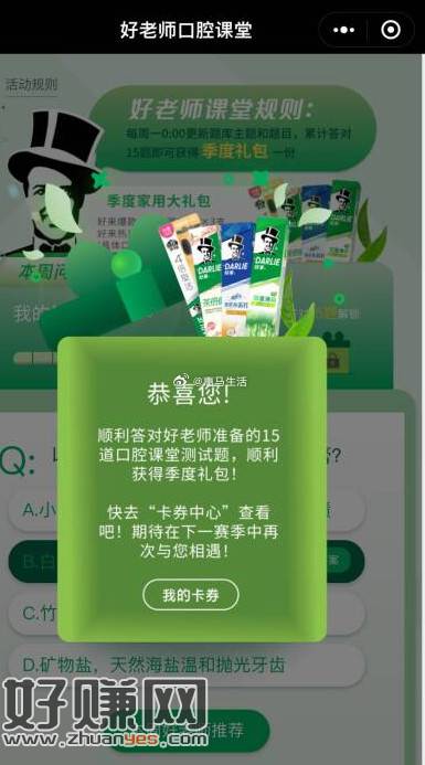 黑人牙膏每周答题领季度礼包