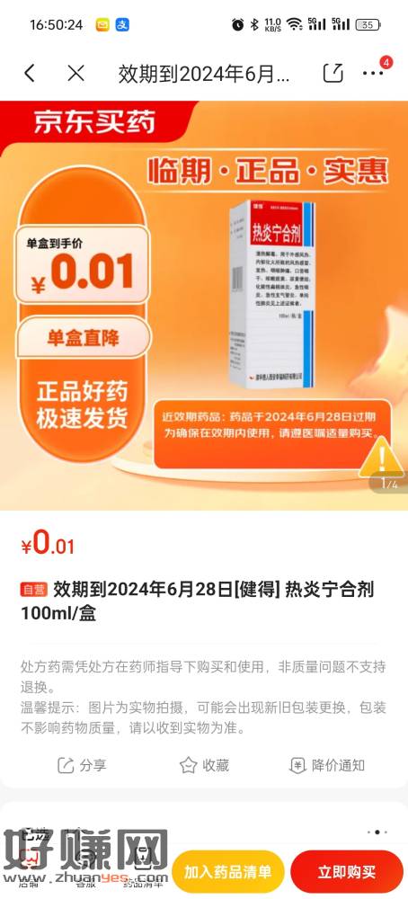 1分钱无限临期感冒药,有需要的可以买[ 京东 ]「效期到2024