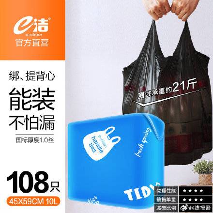 【5.9元包邮】e洁 背心垃圾袋 45x59cm 1.0丝厚 2卷共108只
