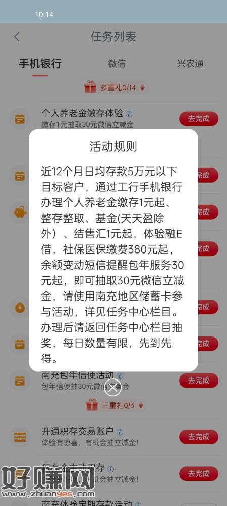 工行南充任务中心,存50r人人30ljj。存了可以撤单(没必要)