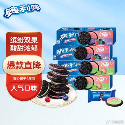 Plus15.11元包邮;奥利奥 (Oreo)夹心饼干 缤纷双果味 97g*4