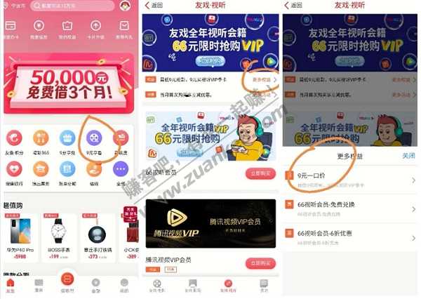 中信xing/用卡APP→动卡空间→首页“9元享看”→更多权益→9元一口价→可以9块钱买视频会员季卡