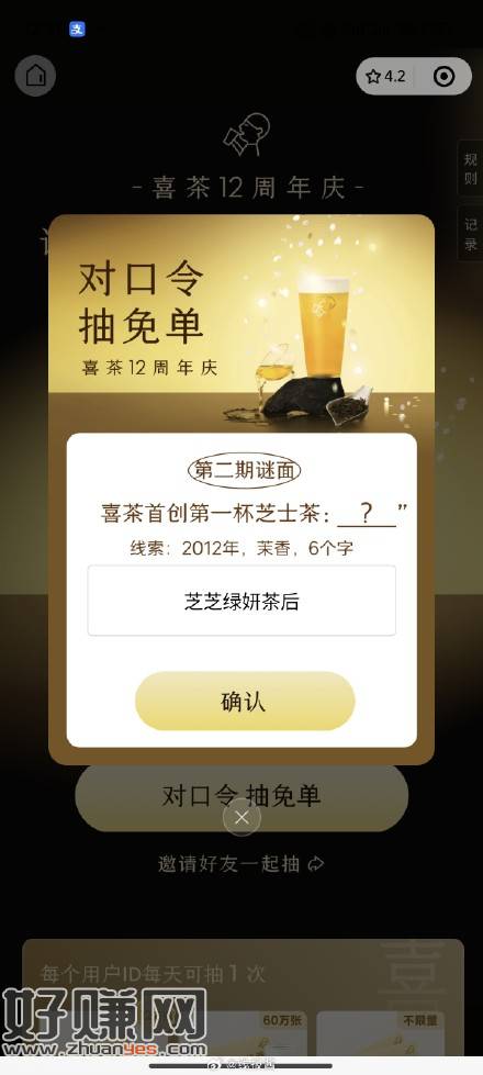 喜茶今日口令:芝芝绿妍茶后