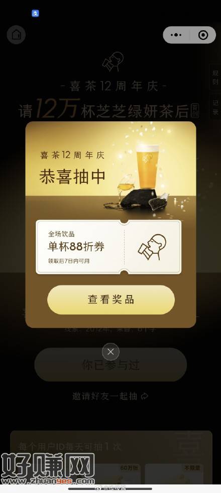喜茶今日口令:芝芝绿妍茶后,基本上88折